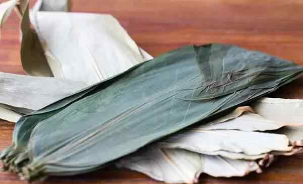 1.挑两片粽子叶,光滑的一面朝上。用手在离叶柄三分之一处将叶子凹进漏斗状。漏斗底部一定要严密,不然米会漏。
