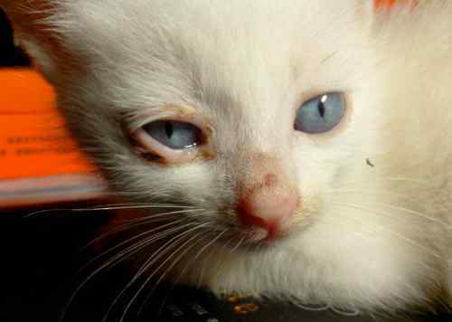 新生儿猫眼炎症是指2周以内幼猫的急性结膜炎。因为小猫的眼皮还打不开,分泌物残留在结膜囊内,引起肿胀,化脓性的眼睛分泌物从内眦流出,甚至整个眼皮都被分泌物覆盖。同窝正常猫相比,病猫眼睛明显肿了。