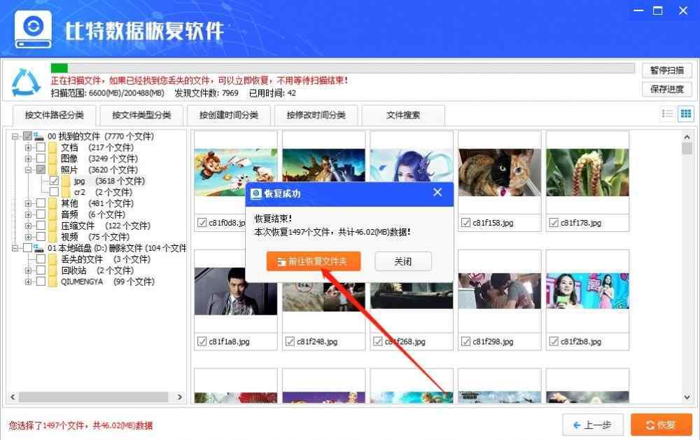 6.耐心等待文件恢复,然后在设置的保存路径下查看恢复的文件