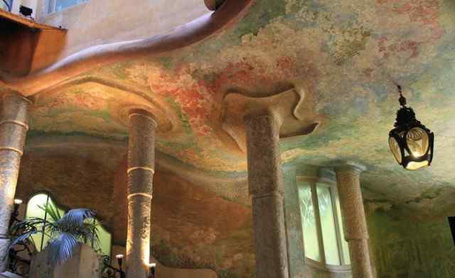 不同图案的烟囱是高迪后来设计的许多大胆烟囱的祖先。高迪钟爱的碎瓷拼贴法也是这里第一次大规模应用。楼梯的曲线环绕着每一层楼。墙砖的巧妙运用产生了意想不到的表现力,成为不落俗套的杰作。