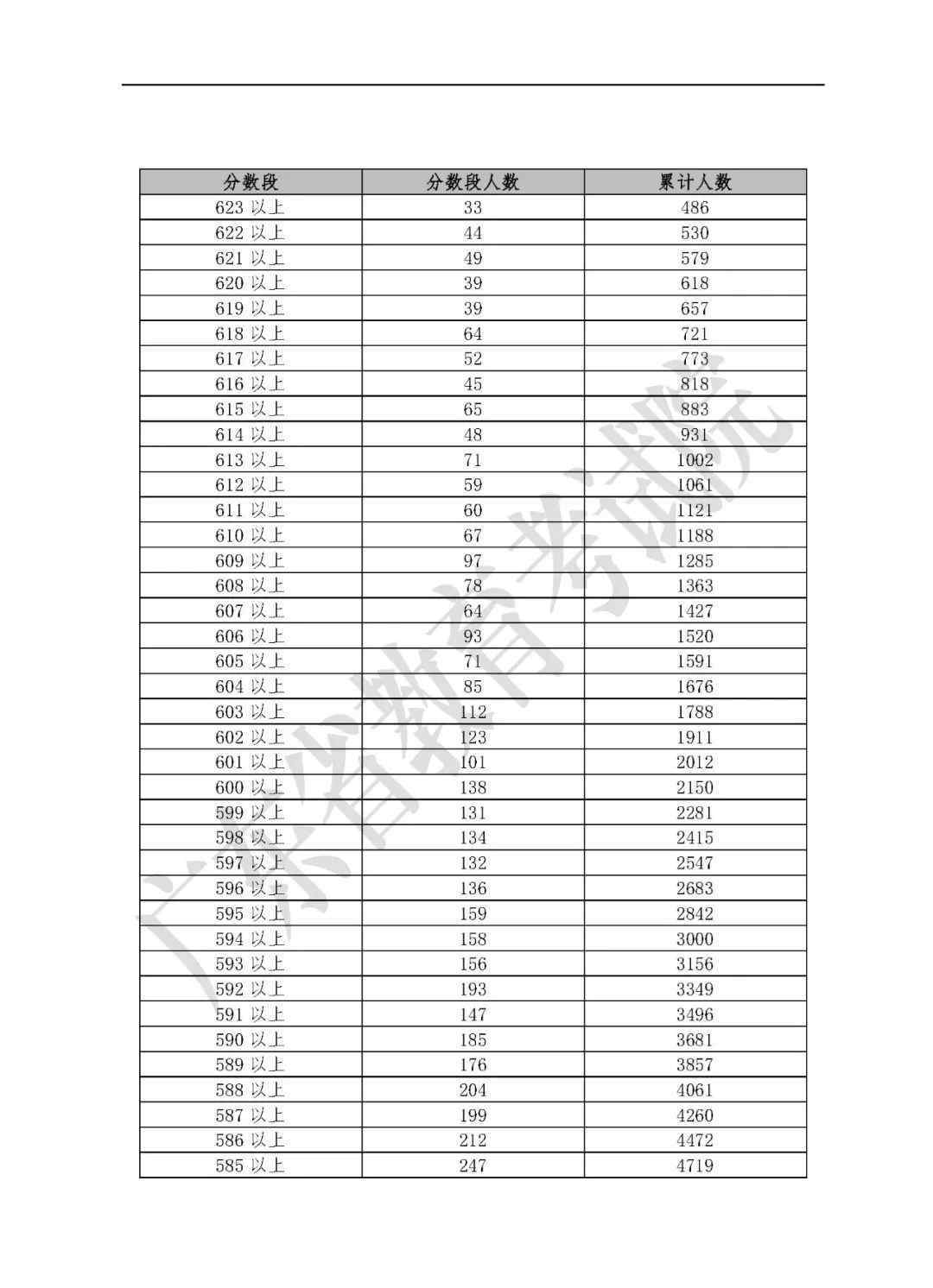 从表中可以看出,655分以上的有22人,647分以上的有46人,600分以上的有2150人,优先归档线以上的有20702人。691分及以上22人,684分及以上50人,677分及以上108人,优先班线以上77056人。