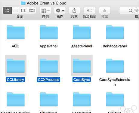进入/applications/utilities/adobe creative cloud,删除CCLibrary、CCXProcess和CoreSync文件夹。