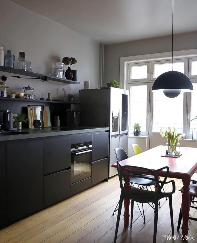 黑色的柜台是女主入住后特意安装在这里的,因为黑色代表的沉稳,放在这里不仅能够迎合旁边的家具,让整体的氛围看起来也特别的好。