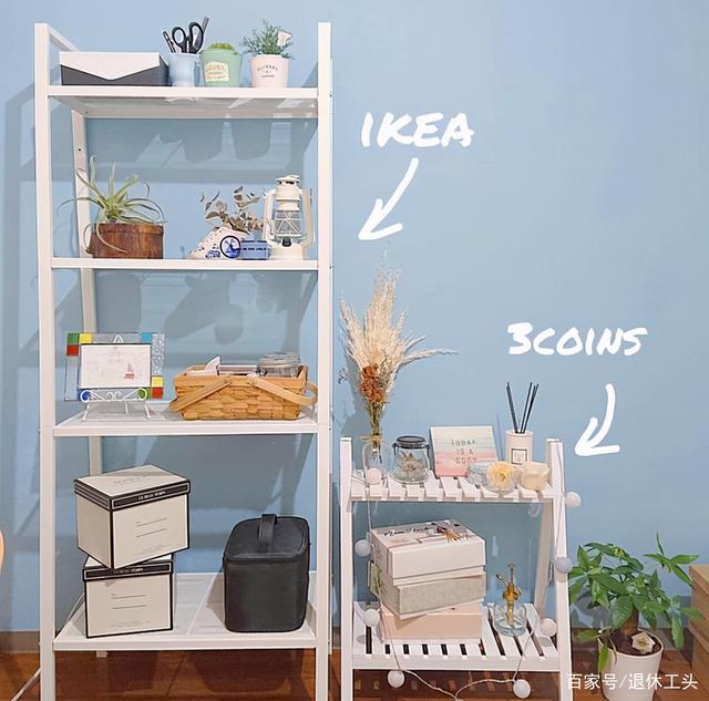 白色的收纳架搭配着蓝色的壁纸,这简直就是神仙配合啊!看着就觉得很美丽,看来日本女主的生活是非常精致的。