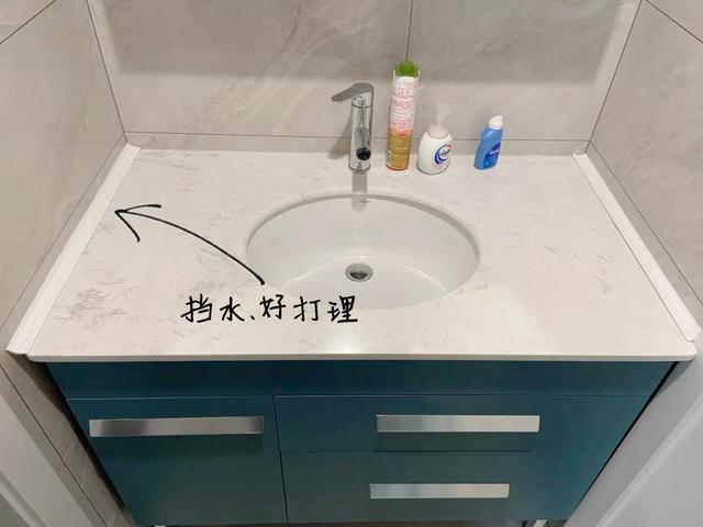 哎呦,效果还不错,虽说相比定制浴室柜密封胶收边是突兀了点,但还不算难看,也解决了实际的问题。