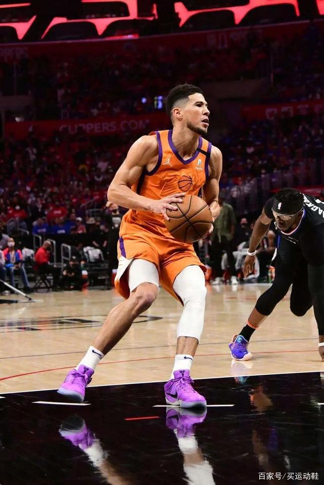 布克季后赛期间的上脚非常专一,一直是自己钟爱的紫色Kobe 4 PE。