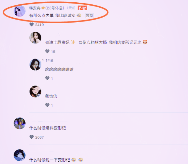 本以为张迪发声,可能是他故意编排的剧情,可没想到靠着《变形计》走红的韩安冉,也忍不住的发声了,只是她没有像张迪做的那么过分,只是说了句:有那么点内幕,我比较诚实,还将这句话给置顶了。不少网友看到了之后,都在评论区说我相信《变形计》元老,什么时候爆料更多的内幕等!