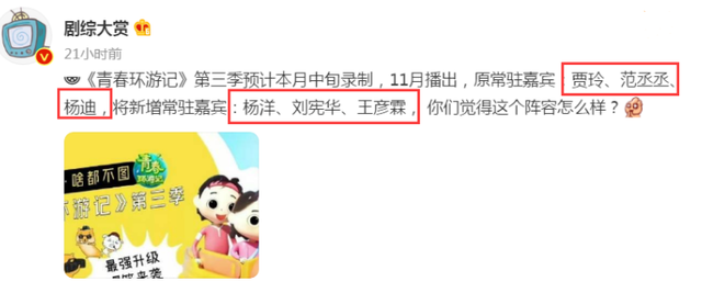 2.《《青春环游记3》被曝“大换血”,老成员只剩3人,杨洋等人加入》仅供读者参考,本网站未对该内容进行证实,对其原创性、真实性、完整性、及时性不作任何保证。