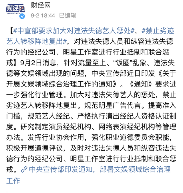 最近一段时间,官方整治娱乐圈的动作一个接着一个。