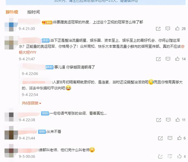 当然还有不少网友对于杨倩参加这个节目也是很不满,并且提醒她:“他们就是蹭奥运冠军的热度,你看看上个上这个卫视的冠军都怎么样了?”、“当下正是整治流量明星,娱乐圈资本至上,娱乐至上的最好机会。杨倩你何必趟这趟浑水?正能量的奥运冠军格局这次太小,真的不应该。”