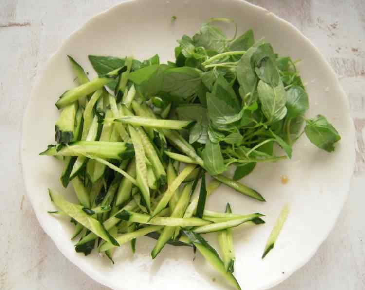 2 黄瓜一根备用,本来想放入一些荆芥,后来着急,忘记放了。