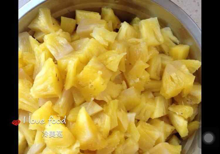 3 把搅拌好的菠萝放到锅里小火进行熬制。