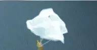 (8)现在你的降落伞就完成啦!找一个阳台或者楼梯间,然后你就可以使连着降落伞的玩具从高处降落啦。仔细观察你的降落伞是如何平稳地滑落到地面的。