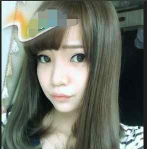 长鹅蛋脸的女生,齐刘海的和长发披发发型,头发还有点微卷式的,看起来是无比的清新,染上6度半闷青头发的头发,显得个性又潮流。