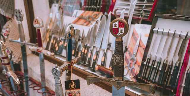 刀剑等冷兵器,还有镶金画,也都是本市独家经营的手工艺品。