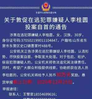 目前,公安机关正在告知涉黑在逃犯罪嫌疑人李桂元尽快自首,争取宽大处理。如果期望群众积极提供线索帮助抓捕李贵元,公安机关将给予他30万元的奖励。